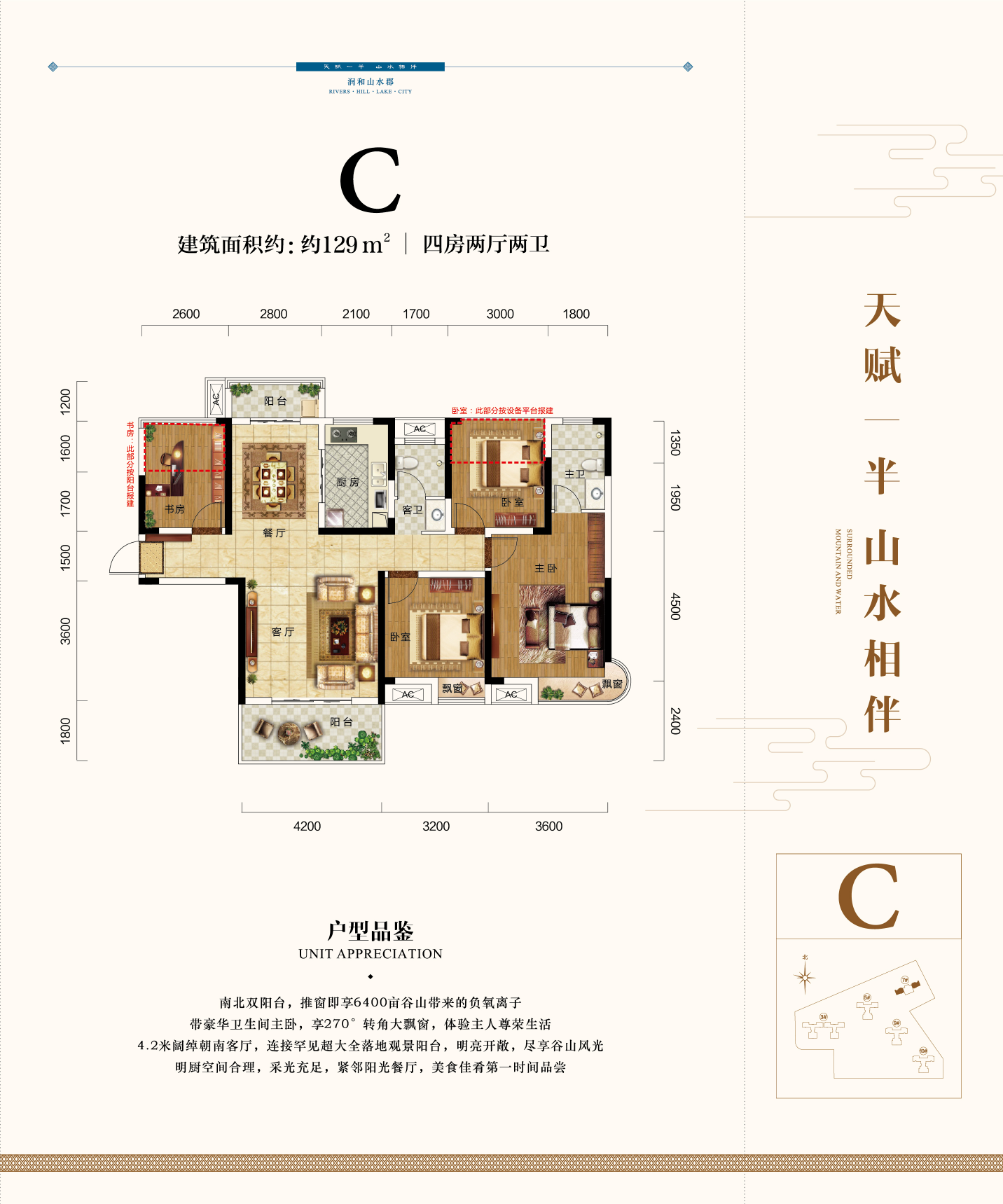 项目位于雷锋大道与黄金大道交汇处,总占地面积191亩,总建筑面积36万平米。项目整体布局像一个聚宝盆被谷山三面环抱,背山面水。整体设计沿袭法式宫廷血脉,精工打磨墅质高层和稀缺复式洋房,集萃平层与复式的精华,缔造低密度、鲜氧的全新生活方式。